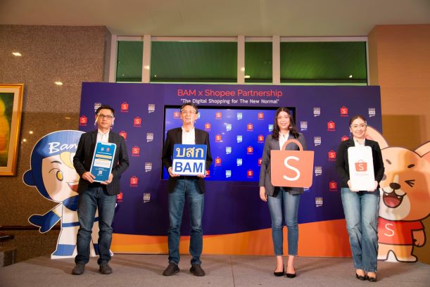 วันนี้ (1 มิถุนายน 2563) เวลา 10.30 น. นายสมบุญ เรืองสุรเกียรติ รองกรรมการผู้จัดการใหญ่ บริษัทบริหารสินทรัพย์ กรุงเทพพาณิชย์ จำกัด (มหาชน) และนางสาวสุชญา ปาลีวงศ์ ผู้จัดการฝ่ายการตลาด บริษัท ช้อปปี้ (ประเทศไทย) จำกัด ทำพิธีเปิดงานความร่วมมือทางธุรกิจ E-Commerce ภายใต้ชื่อ “ BAM x Shopee Partnership -The Digital Shopping for The New Normal ” ณ บริเวณ ชั้น 1 Showroom อาคาร BAM สำนักงานใหญ่