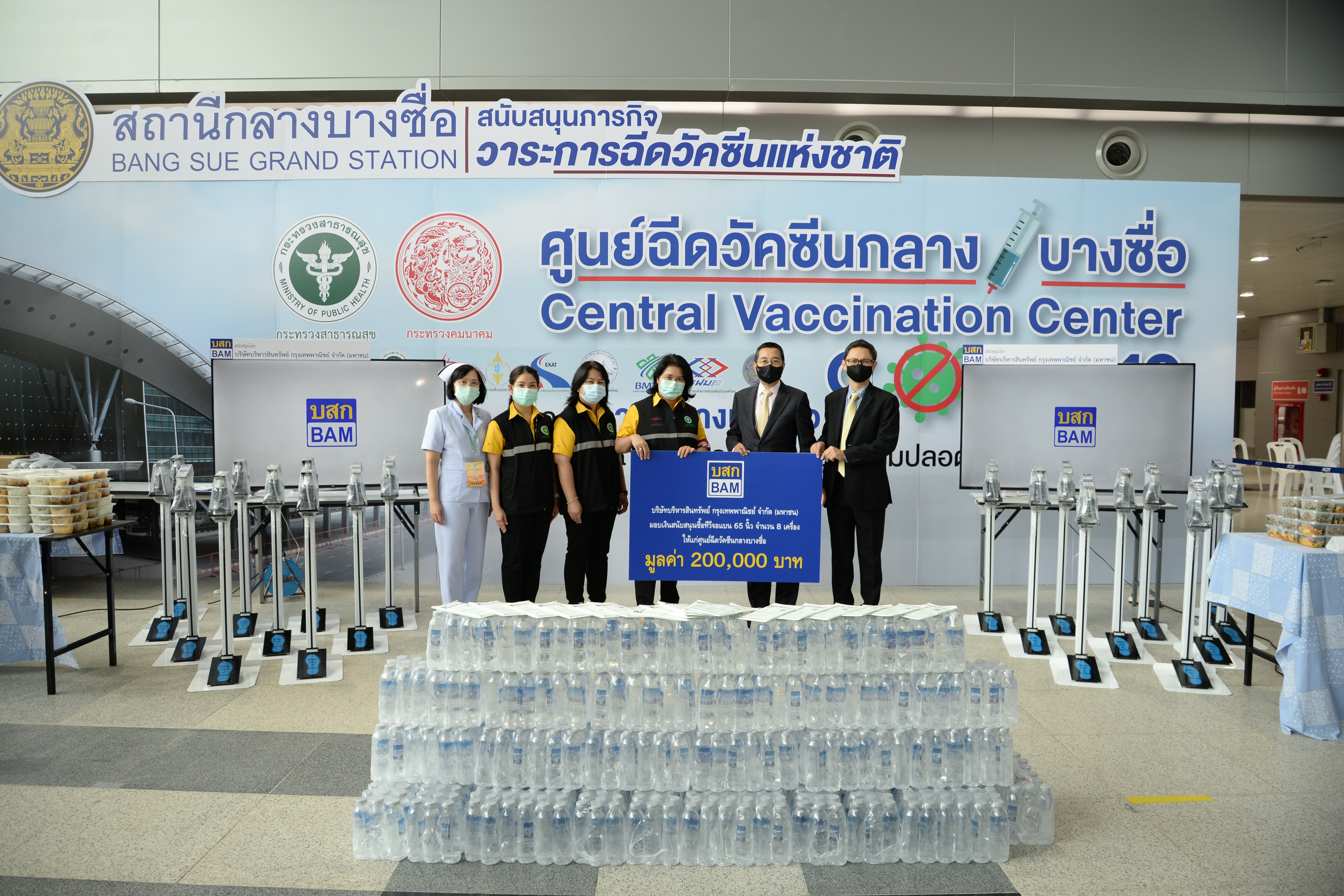 นายบัณฑิต อนันตมงคล ประธานเจ้าหน้าที่บริหาร และนายวีรเวช ศิริชาติไชย รองผู้จัดการใหญ่ บริษัทบริหารสินทรัพย์ กรุงเทพพาณิชย์ จำกัด (มหาชน) หรือ BAM มอบเงินสนับสนุนซื้อทีวีจอแบน 65” จำนวน 8 เครื่อง เพื่อแจ้งข้อมูลการให้บริการและให้ความรู้เกี่ยวกับวัคซีนโควิด -19 แก่ผู้รับบริการฉีดวัคซีน พร้อมมอบเครื่องกดเจลแอลกอฮอล์ฆ่าเชื้อ หน้ากากอนามัย อาหารกล่อง และน้ำดื่ม รวมเป็นจำนวนเงินทั้งสิ้น 270,000 บาท ให้แก่ศูนย์ฉีดวัคซีนกลางบางซื่อ โดยมีแพทย์หญิงมิ่งขวัญ วิชัยดิษฐ ผู้อำนวยการสถาบันโรคผิวหนัง เป็นผู้รับมอบ ซึ่งมีวัตถุประสงค์เพื่อสนับสนุนและสร้างขวัญกำลังใจให้แก่บุคลากรทางการแพทย์และเจ้าหน้าที่ โดยเป็นส่วนหนึ่งในโครงการ BAM ปันน้ำใจ สู้ภัยโควิด – 19 ณ ศูนย์ฉีดวัคซีนกลางบางซื่อ
