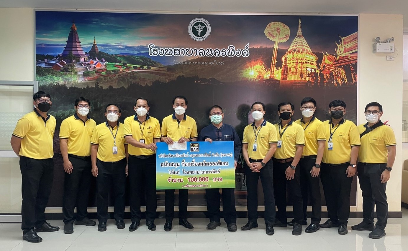 หน้าหลัก > กิจกรรมเพื่อสังคม CSR > BAM ปันน้ำใจ สู้ภัยโควิด -19 มอบเงินสนับสนุนเพื่อจัดซื้อเครื่องผลิตออกซิเจน ให้กับโรงพยาบาลนครพิงค์