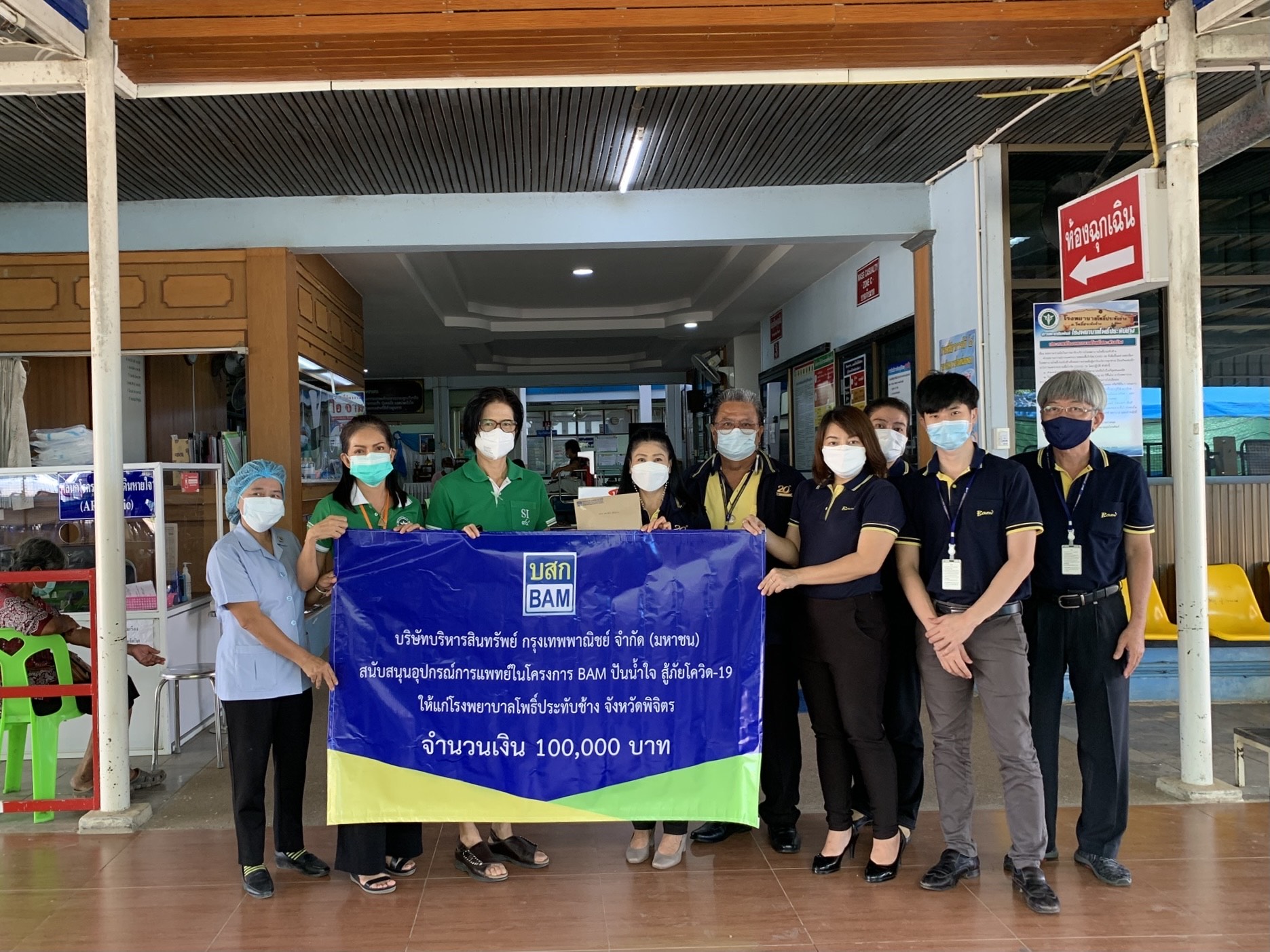 นาง มณฑริกา ฉัตรมงคลพันธ์ ผู้อำนวยการฝ่ายพัฒนาสินทรัพย์และจำหน่ายทรัพย์ภาคเหนือตอนล่าง บริษัทบริหารสินทรัพย์ กรุงเทพพาณิชย์ จำกัด (มหาชน) หรือ BAM พร้อมพนักงาน มอบเงินจำนวน 100,000 บาท เพื่อสนับสนุนการจัดซื้ออุปกรณ์ทางการแพทย์ ให้แก่โรงพยาบาลโพธิ์ประทับช้าง จังหวัดพิจิตร โดยมี แพทย์หญิงสุวรรณา ต่อมยิ้ม ผู้อำนวยการโรงพยาบาล เป็นผู้รับมอบ เพื่อใช้ประโยชน์และอำนวยความสะดวกในกระบวนการรักษาผู้ป่วยต่อไป