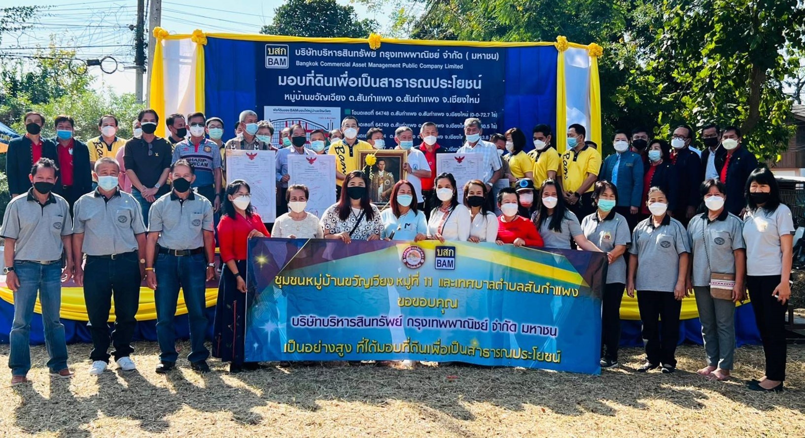 รอการขายของ BAM จำนวน 4 แปลง พื้นที่รวมทั้งสิ้น 6-0-63 ไร่ ( 2,463 ตารางวา ) โดยมีตัวแทนจากเทศบาลตำบลสันกำแพง และชุมชนหมู่บ้านขวัญเวียง เป็นผู้รับมอบ เพื่อใช้เป็นเส้นทางสาธารณประโยชน์แก่ชุมชนหมู่บ้านขวัญเวียง อำเภอสันกำแพง จังหวัดเชียงใหม่