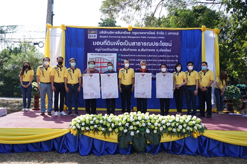 นายบัณฑิต อนันตมงคล ประธานเจ้าหน้าที่บริหาร บริษัทบริหารสินทรัพย์ กรุงเทพพาณิชย์ จำกัด (มหาชน) หรือ BAM พร้อมด้วยคณะผู้บริหารและพนักงาน ลงพื้นที่ส่งมอบโฉนดที่ดิน ซึ่งเป็นทรัพย์สิน