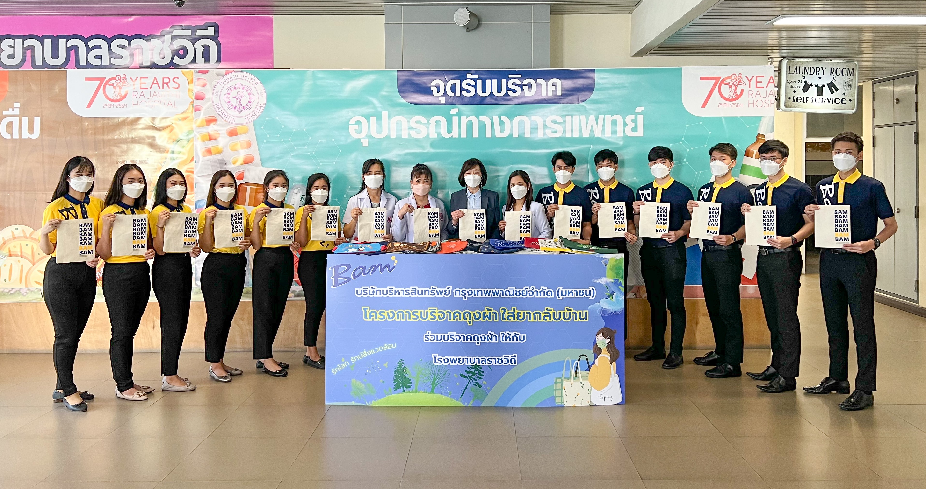 เมื่อเร็ว ๆ นี้ บริษัทบริหารสินทรัพย์ กรุงเทพพาณิชย์ จำกัด (มหาชน) หรือ BAM ได้จัดกิจกรรม “บริจาคถุงผ้า ใส่ยากลับบ้าน” เนื่องในวันสิ่งแวดล้อมโลก โดยคณะผู้บริหารและพนักงาน BAM ทั้งจากส่วนกลางและสำนักงานภูมิภาคทั่วประเทศ ได้ร่วมใจกันรวบรวมถุงผ้าใหม่และถุงผ้าที่ไม่ใช้แล้วแต่ยังอยู่ในสภาพดี เพื่อนำมาแบ่งปันให้กับคนไข้ของโรงพยาบาลต่าง ๆได้ใส่ยากลับบ้าน เพื่อทดแทนการใช้ถุงพลาสติก และลดปัญหาโลกร้อน ได้แก่ 1.โรงพยาบาลราชวิถี กรุงเทพฯ 2.โรงพยาบาลส่งเสริมสุขภาพ ศูนย์อนามัยที่ 1 จ.เชียงใหม่ 3.โรงพยาบาลพุทธชินราช จ.พิษณุโลก 4.โรงพยาบาลเจ้าพระยายมราช จ.สุพรรณบุรี 5.โรงพยาบาลชลบุรี จ.ชลบุรี 6.โรงพยาบาลบุรีรัมย์ จ.บุรีรัมย์ 7.โรงพยาบาลฉลอง จ.ภูเก็ต 8.โรงพยาบาลบางกล่ำ จ.สงขลา ซึ่งรวบรวมจากพนักงานทั่วประเทศ จำนวน 2,568 ใบ และสมทบกับถุงผ้า BAM อีก 1,800 ใบ รวมทั้งสิ้น 4,468 ใบ