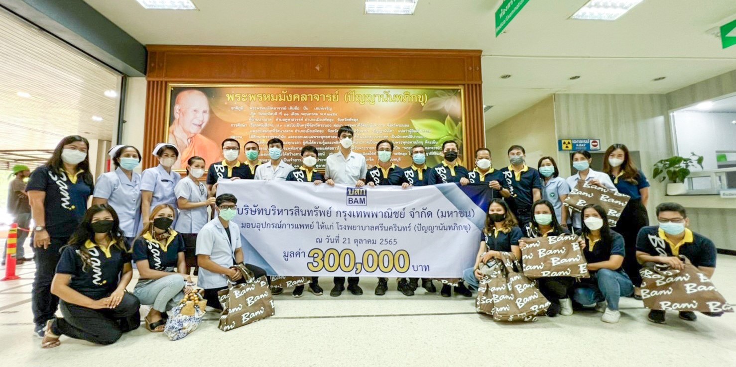 นายพงศธร มณีพิมพ์ รองผู้จัดการใหญ่ สายพัฒนาสินทรัพย์ภูมิภาค นายชะลอ อุตะปะละ ผู้อำนวยการฝ่ายพัฒนาสินทรัพย์ภาคใต้ตอนล่าง บริษัทบริหารสินทรัพย์ กรุงเทพพาณิชย์ จำกัด (มหาชน) หรือ BAM พร้อมพนักงาน ร่วมมอบอุปกรณ์การแพทย์ รวมมูลค่า 300,000 บาท ประกอบด้วย 1. เครื่องตรวจคลื่นไฟฟ้าหัวใจพร้อมระบบประมวลผล จำนวน 1 เครื่อง 2. เครื่องติดตามสัญญาณชีพ Vital Sign Monitor จำนวน 1 เครื่อง 3. เครื่องวัดความอิ่มตัวของออกซิเจนในเลือดสำหรับเด็ก จำนวน 1 เครื่อง 4. เครื่องวัดความอิ่มตัวออกซิเจนในเลือดสำหรับผู้ใหญ่ จำนวน 1 เครื่อง 5. เครื่องวัดความดันชนิดปรอทแบบล้อเลื่อน จำนวน 2 เครื่อง ให้กับ ทันตแพทย์ ชัยเมศวร์ ซุ่นอื้อ รักษาการผู้อำนวยการโรงพยาบาลศรีนครินทร์ (ปัญญานันทภิกขุ) จังหวัดพัทลุง เพื่อเพิ่มประสิทธิภาพการติดตามดูแลผู้ป่วยได้อย่างใกล้ชิด รวมทั้งส่งเสริมการดำเนินงานด้านสาธารณสุขของชุมชน และสังคม ให้ยั่งยืนต่อไป