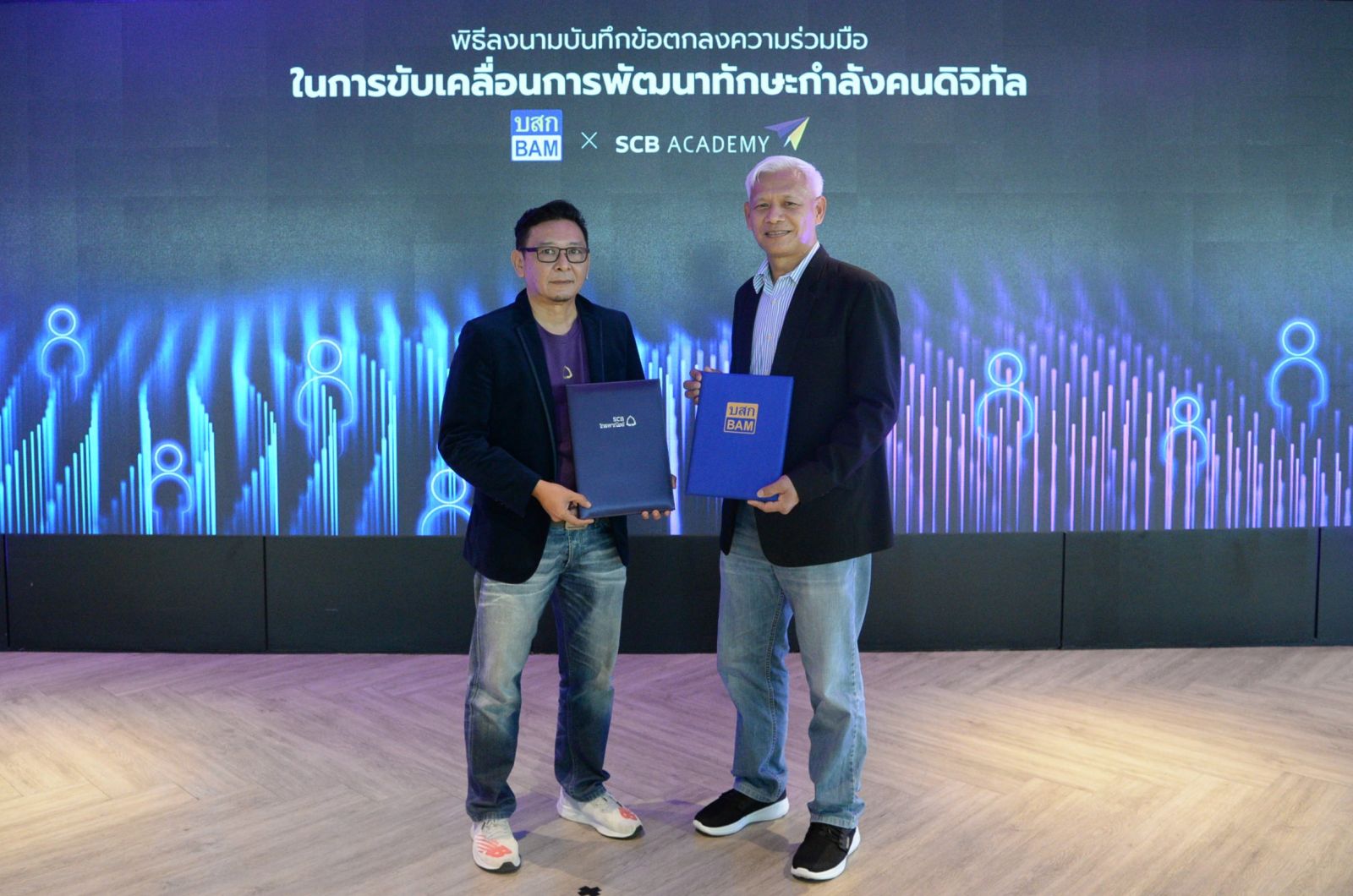 SCB Academy ธนาคารไทยพาณิชย์ ร่วมลงนามบันทึกข้อตกลงความร่วมมือทางธุรกิจในการขับเคลื่อนการพัฒนาทักษะกำลังคนดิจิทัล กับบริษัทบริหารสินทรัพย์ กรุงเทพพาณิชย์ จำกัด (มหาชน) หรือ BAM วางหลักสูตรขับเคลื่อนการพัฒนาทักษะกำลังคนดิจิทัล เตรียมพร้อมการทำงานในโลกอนาคต สอดรับกับเป้าหมายของ BAM ที่มุ่งสู่การเป็นองค์กรที่ขับเคลื่อนด้วยข้อมูล (Data Driven Organization)