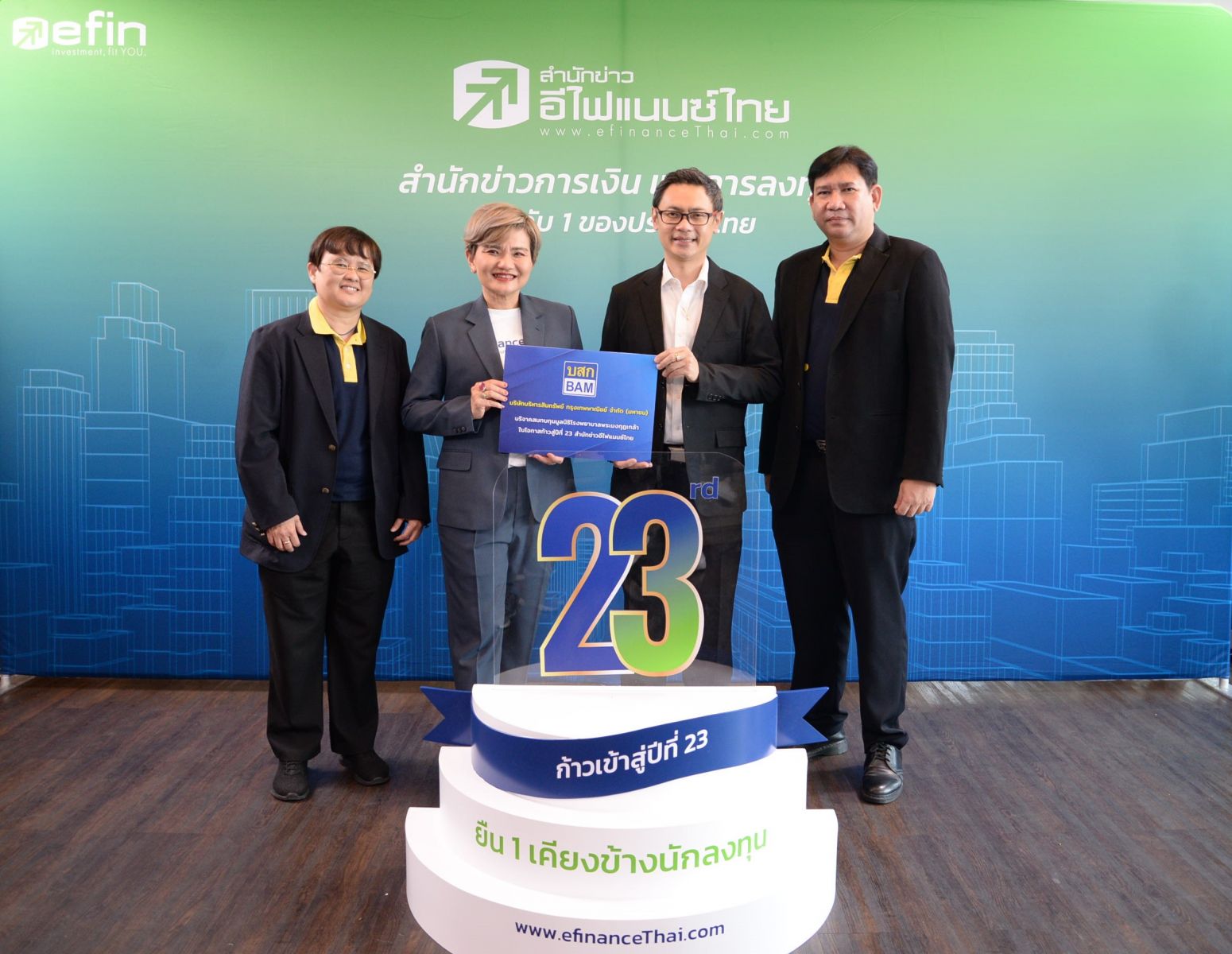 นายวีรเวช ศิริชาติไชย รองประธานเจ้าหน้าที่บริหาร บริษัทบริหารสินทรัพย์ กรุงเทพพาณิชย์ จำกัด (มหาชน) หรือ BAM มอบเงินให้แก่ มูลนิธิโรงพยาบาลพระมงกุฎเกล้า เพื่อการรักษาพยาบาลผู้ป่วยและผู้ยากไร้ด้อยโอกาส จำนวน 20,000 บาท ในโอกาสร่วมแสดงความยินดี ก้าวสู่ปีที่ 23 ของสำนักข่าวอีไฟแนนซ์ไทย โดยมี นางสาวพิมพ์รภัส ศิริไพรวัน บรรณาธิการบริหาร บริษัท ออนไลน์แอสเซ็ท จำกัด เป็นผู้แทนรับมอบ ณ อาคารอีฟิน เมื่อวันที่ 22 มีนาคม 2566