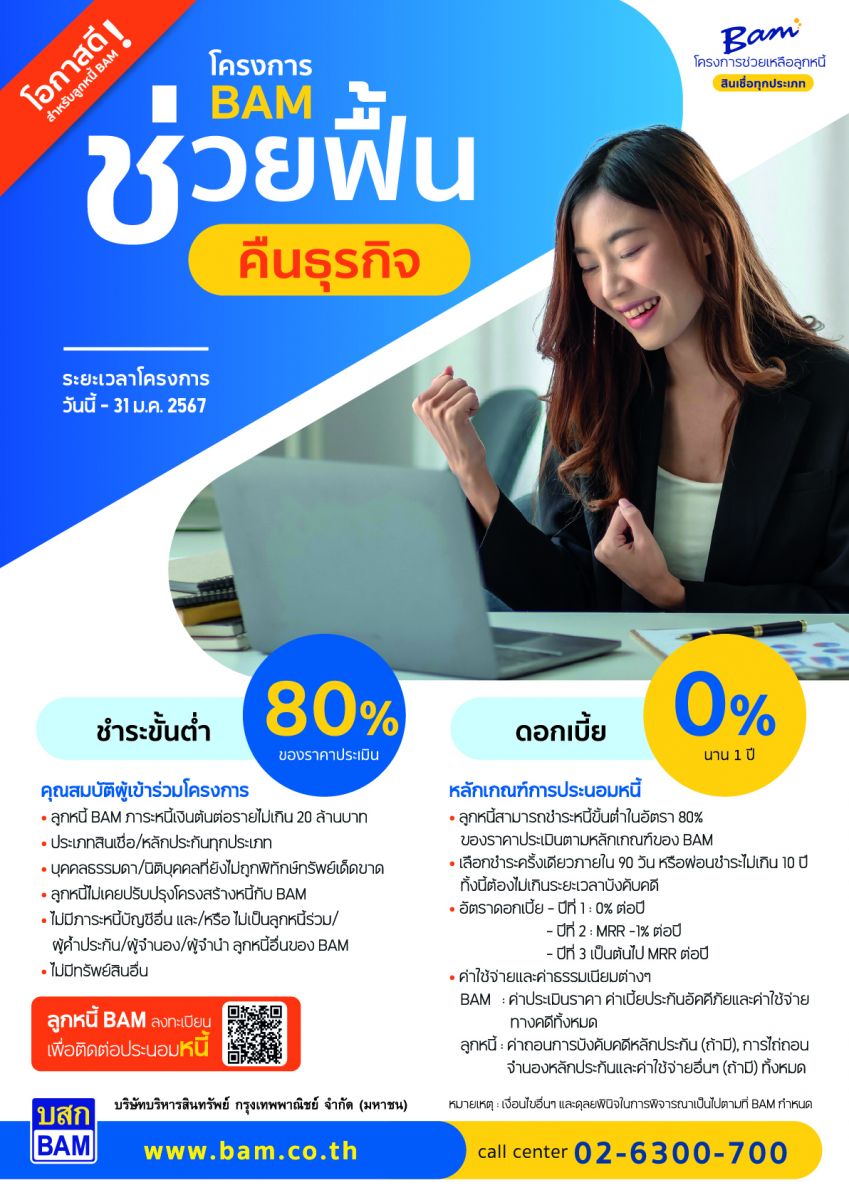 ลูกค้าที่สนใจสอบถามรายละเอียดเพิ่มเติมได้ที่ Call Center 02-6300-700 หรือ www.bam.co.th หรือ Social Media : BAM Thailand