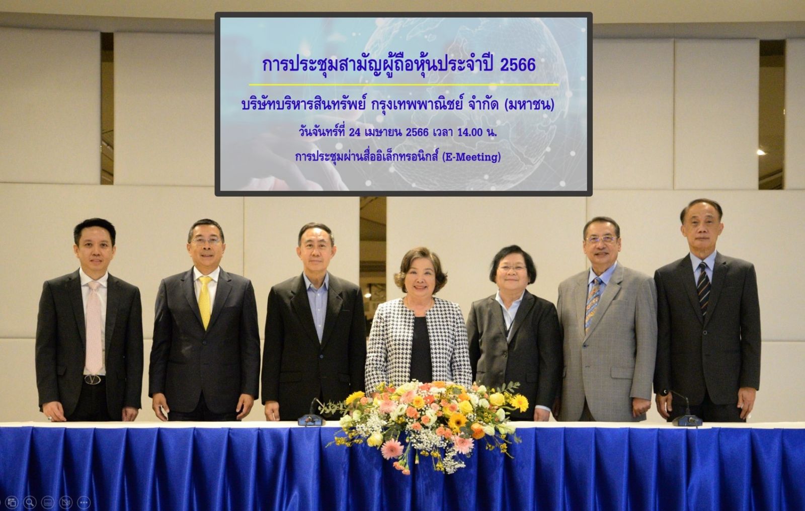 วันที่ 24 เมษายน 2566 นางทองอุไร ลิ้มปิติ ประธานกรรมการ พร้อมคณะกรรมการและผู้บริหาร บริษัทบริหารสินทรัพย์ กรุงเทพพาณิชย์ จำกัด (มหาชน) หรือ BAM ร่วมประชุมสามัญผู้ถือหุ้นประจำปี 2566 ผ่านสื่ออิเล็กทรอนิกส์ (E-Meeting) ณ ห้องประชุม ชั้น 17 อาคารสำนักงานใหญ่ BAM โดยที่ประชุมมีมติอนุมัติให้จ่ายเงินปันผลสำหรับผลการดำเนินงาน สิ้นสุดวันที่ 31 ธันวาคม 2565 ให้แก่ผู้ถือหุ้นในอัตราหุ้นละ 0.55 บาท พร้อมกำหนดรายชื่อ ผู้ถือหุ้นที่มีสิทธิรับเงินปันผล (Record Date) ในวันที่ 3 พฤษภาคม 2566 และกำหนดจ่ายเงินปันผลในวันที่ 23 พฤษภาคม 2566