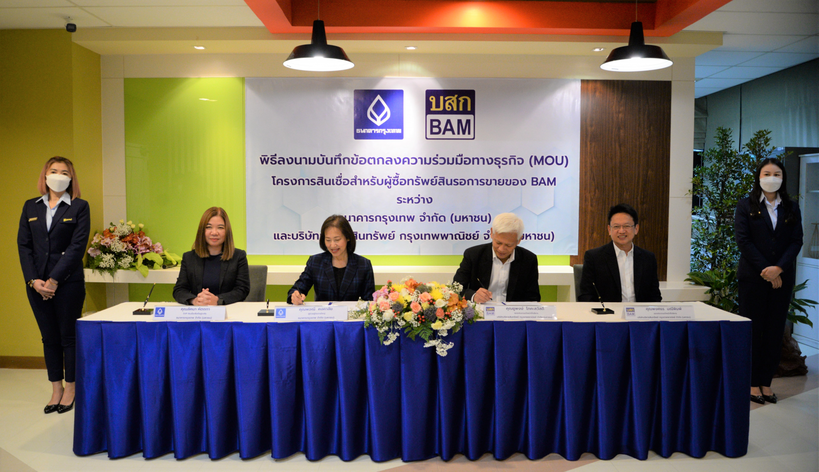 บริษัทบริหารสินทรัพย์ กรุงเทพพาณิชย์ จำกัด (มหาชน) หรือ BAM จับมือ ธนาคารกรุงเทพ ลงนาม “โครงการสินเชื่อบ้านบัวหลวงสำหรับผู้ซื้อทรัพย์ของ BAM” ตอบโจทย์คนอยากได้บ้านมือสอง คุณภาพดี ราคาโดนใจ พร้อมสินเชื่อดอกเบี้ยสุดพิเศษ ปีแรกเริ่มต้นเพียง 1.95% ผ่อนต่ำล้านละ 3,000 บาท/เดือน ฟรี! ค่าประเมินราคาหลักประกัน