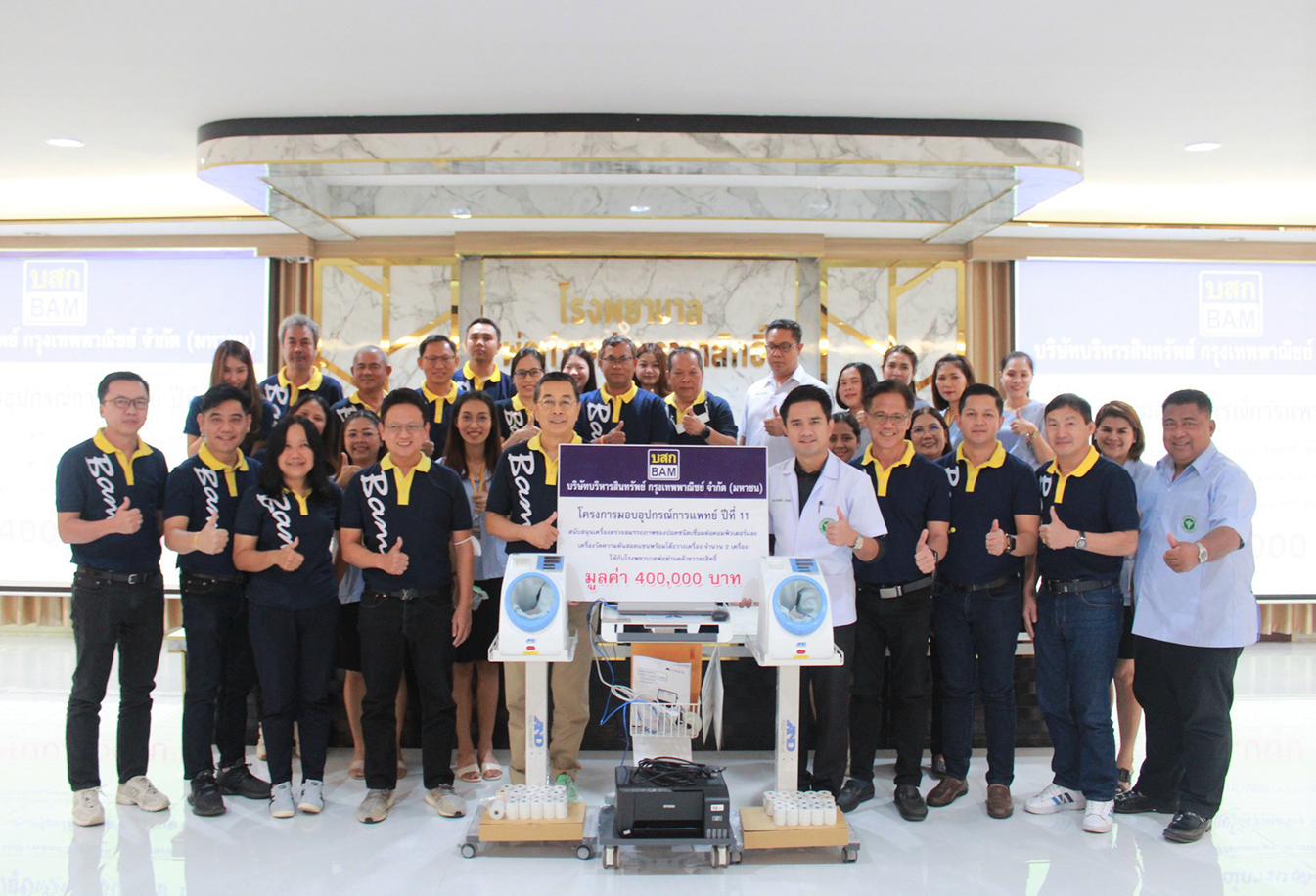 BAM ดำเนินโครงการมอบอุปกรณ์การแพทย์ให้กับโรงพยาบาลรัฐปีละ 10 แห่งทั่วประเทศ อย่างต่อเนื่อง เป็นปีที่ 11 เพื่อส่งเสริมการดำเนินงานด้านสาธารณสุขของชุมชน และสังคมอย่างยั่งยืน ซึ่งเป็นส่วนหนึ่งในแนวคิด ESG ควบคู่กับการแบ่งปันโอกาส โดยคำนึงถึงผู้มีส่วนได้เสียในทุกมิติให้ก้าวไปพร้อมกัน