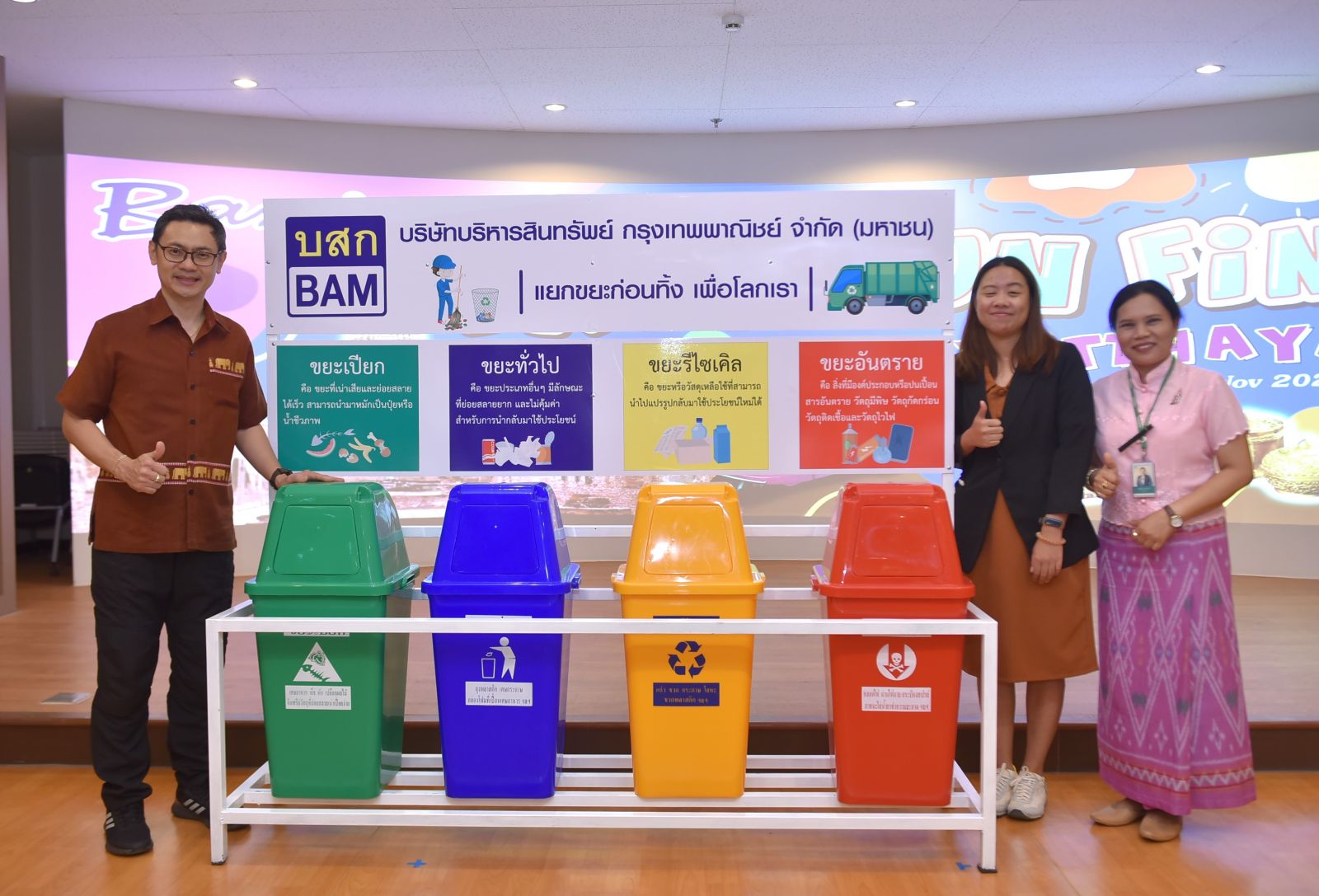 หน้าหลัก > ข่าวประชาสัมพันธ์ BAM > BAM มอบชุดถังขยะแยกประเภท ช่วยลดโลกร้อน