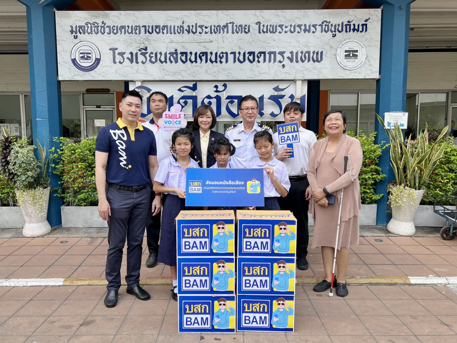 นางวิภาศิริ แสงวัชระกุล ผู้ช่วยประธานเจ้าหน้าที่บริหาร บริษัทบริหารสินทรัพย์ กรุงเทพพาณิชย์ จำกัด (มหาชน) หรือ BAM เป็นตัวแทนบริษัทฯ ในการส่งมอบหนังสือเสียงให้แก่ผู้พิการทางสายตา โดยมีพนักงาน BAM มาเป็นจิตอาสาร่วมอ่าน ในโครงการ “SMILE VOICE เสียงนี้เพื่อรอยยิ้ม” เพื่อมอบให้แก่ โรงเรียนสอนคนตาบอดกรุงเทพ มูลนิธิช่วยคนตาบอดแห่งประเทศไทย ในพระบรมราชินูปถัมภ์ โดยมีนายประสงค์ สุบรรณพงษ์ ผู้อำนวยการโรงเรียนฯ เป็นผู้รับมอบ ณ โรงเรียนสอนคนตาบอดกรุงเทพ มูลนิธิช่วยคนตาบอดแห่งประเทศไทย ในพระบรมราชินูปถัมภ์ เขตราชเทวี กรุงเทพมหานคร