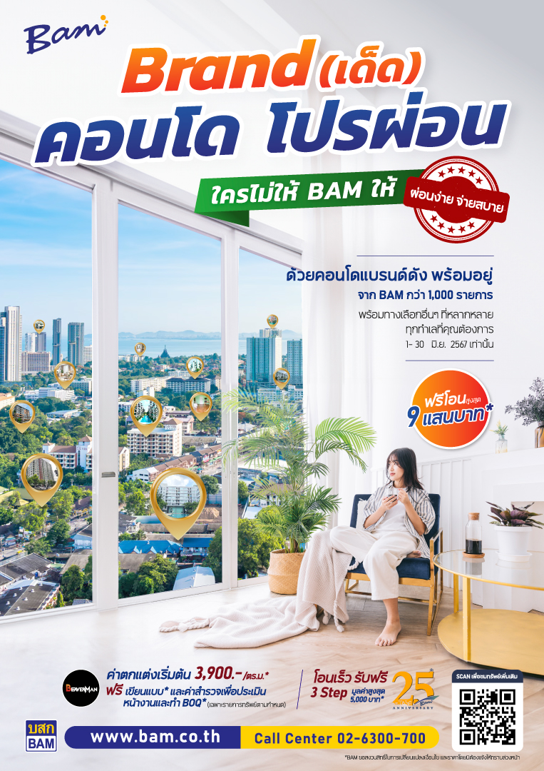 นายบัณฑิต อนันตมงคล ประธานเจ้าหน้าที่บริหารบริษัทบริหารสินทรัพย์ กรุงเทพพาณิชย์ จำกัด (มหาชน) หรือ BAM กล่าวว่า BAM จัดแคมเปญ “ Brand (เด็ด) คอนโด โปรผ่อน ใครไม่ให้ BAM ให้ ” โดยคัดคอนโดแบรนด์ดัง ทำเลดี ราคา 1.0 – 3.0 ล้านบาท จำนวนกว่า 1,000 รายการ ทั้งในกรุงเทพฯ ปริมณฑล และต่างจังหวัด นำมาจัดโปรโมชั่นผ่อนชำระกับ BAM เพื่อช่วยเหลือลูกค้าที่มีงบประมาณจำกัด หรือมีปัญหาในการขอสินเชื่อจากสถาบันการเงิน สามารถยื่นขอเข้าร่วมโครงการผ่อนชำระกับ BAM โดยคิดอัตราดอกเบี้ย MRR ลบ 3% นาน 12 เดือน ผ่อนเริ่มต้น 6,500 บาทต่อเดือน จากนั้นคิดอัตราดอกเบี้ย MRR BAM จนครบอายุสัญญา สูงสุดไม่เกิน 20 ปี