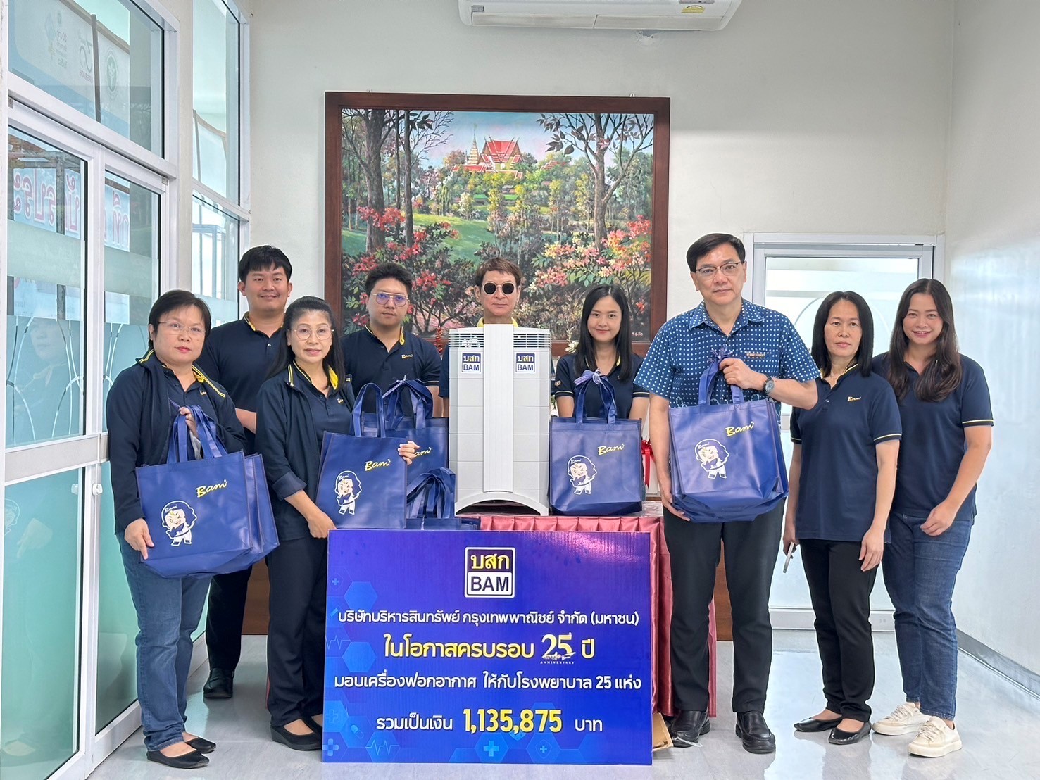 สำหรับการมอบเครื่องฟอกอากาศให้กับโรงพยาบาลดังกล่าว เป็นส่วนหนึ่งของกิจกรรมในโอกาสที่ BAM ครบรอบ 25 ปี จึงได้จัดทำโครงการมอบเครื่องฟอกอากาศให้กับโรงพยาบาล 25 แห่งทั่วประเทศ โดยดำเนินการตามนโยบายส่งเสริมการดำเนินงานด้านสาธารณสุขของประเทศ และร่วมแก้ปัญหามลพิษ เสริมสร้างสุขอนามัยที่ดีให้กับผู้ป่วย รวมทั้งสนับสนุนการปฏิบัติงานบุคลากรทางการแพทย์ให้เกิดประสิทธิภาพ ในการรักษาพยาบาลผู้ป่วยให้มีสุขภาพที่ดีต่อไป