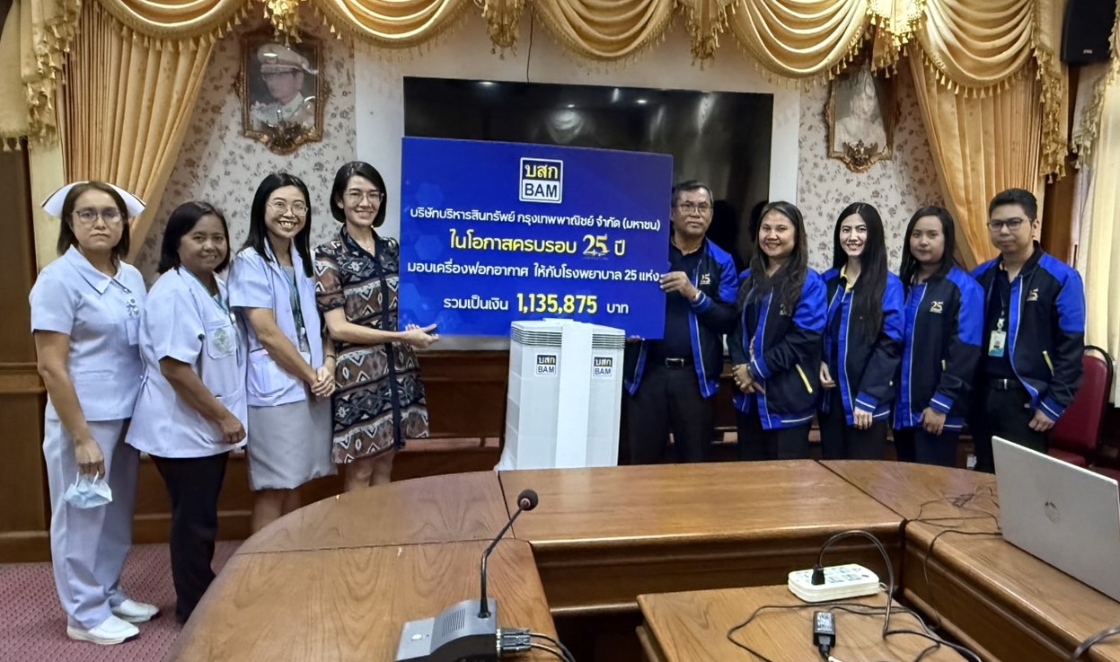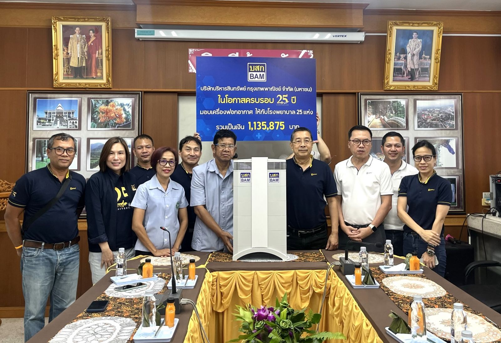 สำหรับการมอบเครื่องฟอกอากาศให้กับโรงพยาบาลดังกล่าว เป็นส่วนหนึ่งของกิจกรรมในโอกาส ที่ BAM ครบรอบ 25 ปี จึงได้จัดทำโครงการมอบเครื่องฟอกอากาศให้กับโรงพยาบาล 25 แห่งทั่วประเทศ โดยดำเนินการตามนโยบายส่งเสริมการดำเนินงานด้านสาธารณสุขของประเทศ และร่วมแก้ปัญหามลพิษ เสริมสร้างสุขอนามัยที่ดีให้กับผู้ป่วย รวมทั้งสนับสนุนการปฏิบัติงานบุคลากรทางการแพทย์ให้เกิดประสิทธิภาพในการรักษาพยาบาลผู้ป่วยให้มีสุขภาพที่ดีต่อไป
