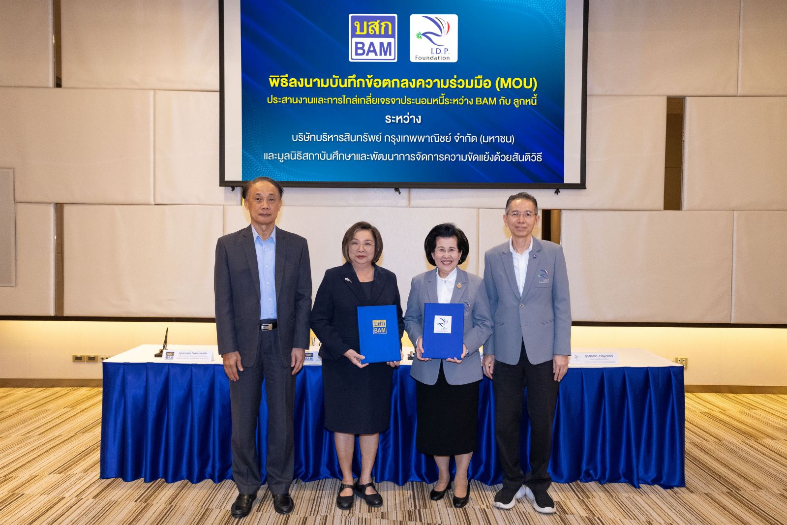 พิธีลงนามความร่วมมือครั้งนี้ จัดขึ้นเมื่อวันที่ 20 มกราคม 2568 ที่บริษัทบริหารสินทรัพย์ กรุงเทพพาณิชย์ จำกัด (มหาชน) สำนักงานใหญ่ เป็นการลงนามระหว่าง BAM โดย นางทองอุไร ลิ้มปิติ ประธานกรรมการ บริษัทบริหารสินทรัพย์ กรุงเทพพาณิชย์ จำกัด (มหาชน) กับ มูลนิธิ ส.พ.ส. โดย นางประกายรัตน์ ต้นธีรวงศ์ ประธานมูลนิธิสถาบันศึกษา และพัฒนาการจัดการความขัดแย้งด้วยสันติวิธี (ส.พ.ส) เป็นผู้ลงนาม พร้อมกันนี้ บบส.อารีย์ โดย นายสันธิษณ์ วัฒนกุล ประธานเจ้าหน้าที่บริหาร ได้ลงนามบันทึกข้อตกลงความร่วมมือกับ มูลนิธิ ส.พ.ส. โดย นางประกายรัตน์ ต้นธีรวงศ์ ประธานมูลนิธิสถาบันศึกษาและพัฒนาการจัดการ ความขัดแย้งด้วยสันติวิธี (ส.พ.ส) เป็นผู้ลงนาม