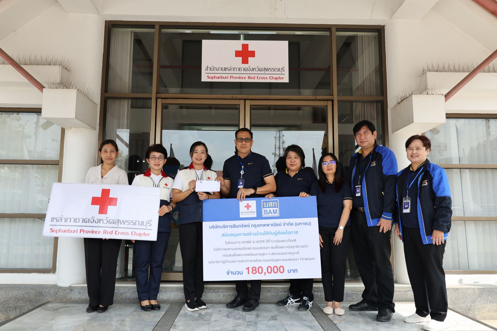 นายอโนทัย ส่องประเสริฐ ผู้อำนวยการฝ่ายพัฒนาสินทรัพย์ภาคกลาง นางสาวอรพรรณ พรหมเดช ผู้จัดการสำนักงานสุพรรณบุรี พร้อมทั้งผู้บริหารและพนักงาน บริษัทบริหารสินทรัพย์ กรุงเทพพาณิชย์ จำกัด (มหาชน) หรือ BAM มอบเงินจำนวน 180,000 บาท ให้กับเหล่ากาชาดจังหวัดสุพรรณบุรี โดยมี นางมณฑา ฉันทดิลก นายกเหล่ากาชาดจังหวัดสุพรรณบุรี นางสุจิตรา ขาวประเสริฐ รองนายกเหล่ากาชาดจังหวัดสุพรรณบุรี เป็นตัวแทนรับมอบเพื่อนำไปสร้างบ้าน โครงการ Home & Hope “ การพัฒนาที่อยู่อาศัยเฉลิมพระเกียรติ ในโอกาสมหามงคล เฉลิมพระชนมพรรษา สมเด็จพระกนิษฐาธิราชเจ้า กรมสมเด็จพระเทพรัตนราชสุดา ฯ สยามบรมราชกุมารี อุปนายิกาผู้อำนวยการสภากาชาดไทย ทรงเจริญพระชนมพรรษา 70 พรรษา” ให้กับ นางสำรวม ภูฆัง อายุ 78 ปี อาศัยอยู่ ณ ตำบลป่าสะแก อำเภอเดิมบางนางบวช จังหวัดสุพรรณบุรี