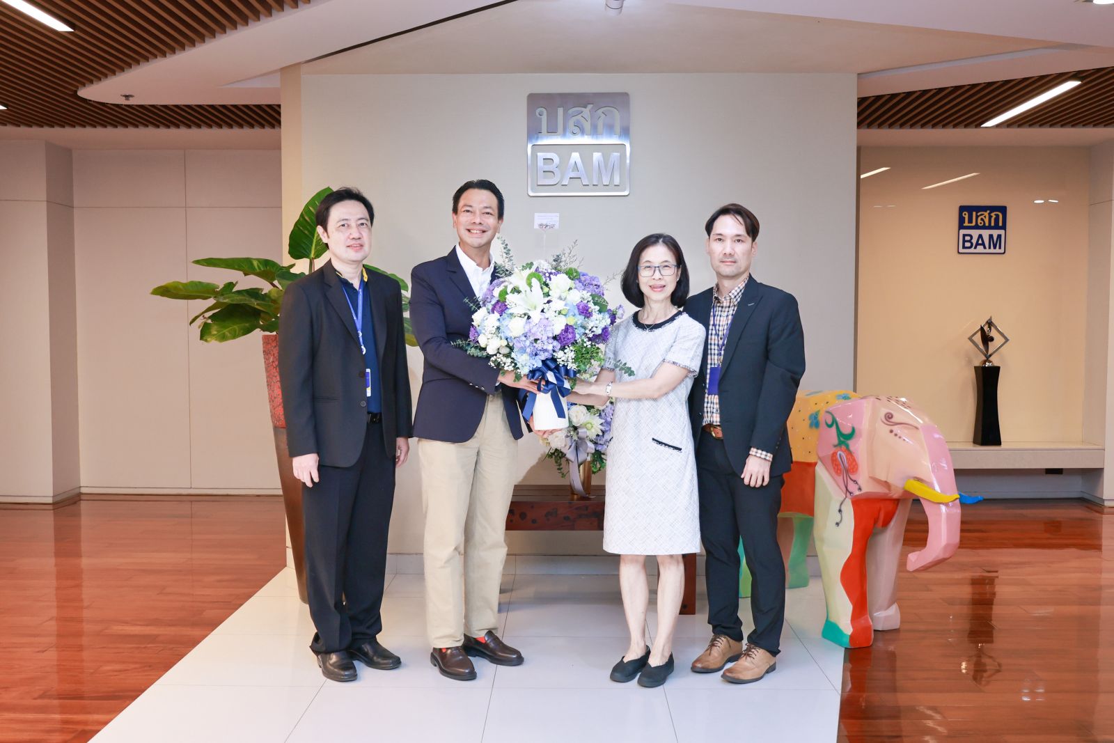 ดร.รักษ์ วรกิจโภคาทร ประธานเจ้าหน้าที่บริหาร บริษัทบริหารสินทรัพย์ กรุงเทพพาณิชย์ จำกัด (มหาชน) หรือ BAM ให้การต้อนรับ คุณลัดดา กุลมาโนชวงศ์ ผู้อำนวยการอาวุโส สายงานบริหารงานธุรกิจพิเศษและบริหารงานคดี ธนาคารไทยพาณิชย์ จำกัด (มหาชน) หรือ SCB ในโอกาสร่วมแสดงความยินดีกับการดำรงตำแหน่งประธานเจ้าหน้าที่บริหาร BAM คนใหม่ พร้อมหารือความร่วมมือทางธุรกิจร่วมกัน ณ BAM สำนักงานใหญ่