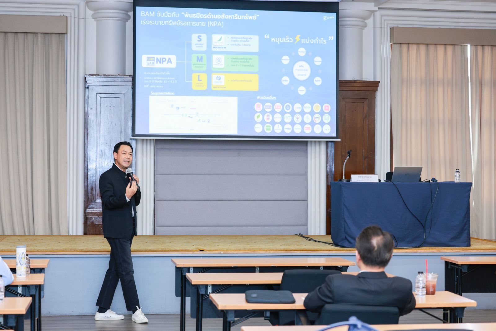 ดร.รักษ์ CEO BAM เรียกเสียงปรบมือรัวๆ จากการแชร์ประสบการณ์การบรรยาย “การขับเคลื่อนการเปลี่ยนแปลงองค์กรอย่างยั่งยืน กรณีศึกษา: BAM กับการใช้แนวคิด ESG ในการฟื้นฟูองค์กร” ของหลักสูตร Leadership Succession Program (LSP) จัดโดยมูลนิธิสถาบันวิจัยและพัฒนาองค์กรภาครัฐ (IRDP) ได้เปิดแนวคิดการดำเนินธุรกิจอย่างยั่งยืน จาก Model “ปู่โสมเฝ้าทรัพย์” ที่เน้นการปรับโครงสร้างหนี้ตามเกณฑ์สิทธิ์ และใช้กระบวนการทางคดีในการสร้างสภาพบังคับจาก NPL เป็น NPA เปลี่ยนมาสู่ Model ธุรกิจใหม่ ในรูปแบบ “Opportunities for All” ด้วยการให้โอกาสลูกหนี้ผ่อนชำระตามความสามารถ (Ability to Pay) พร้อมกลยุทธ์ Business Partnerships “หมุนเร็ว แบ่งกำไร ใช้จุดแข็ง ปิดจุดอ่อน” เร่งสร้างรายได้ร่วมมือกับพันธมิตรพัฒนาและเพิ่มมูลค่าทรัพย์ เพื่อให้การลงทุนใน NPA เป็น Investment of choice