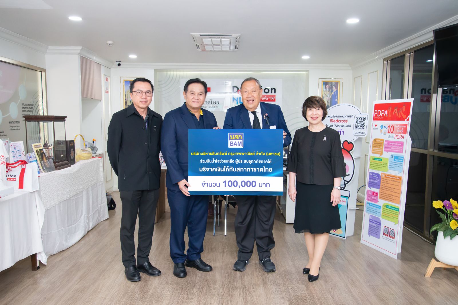 คุณสมพร มูลศรีแก้ว ผู้จัดการใหญ่ สายธุรกิจ คุณวุฒิพงศ์ บุญยะสิทธิ์ ผู้ช่วยประธานเจ้าหน้าที่บริหาร สายพัฒนาสินทรัพย์ภูมิภาค 2 บริษัทบริหารสินทรัพย์ กรุงเทพพาณิชย์ จำกัด (มหาชน) หรือ BAM มอบเงินสมทบโครงการปันน้ำใจช่วยเหลือผู้ประสบอุทกภัยในพื้นที่ภาคใต้ ให้กับสภากาชาดไทย จำนวน 100,000 บาท โดยมีคุณขรรค์ ประจวบเหมาะ ผู้อำนวยการสำนักงานจัดหารายได้ และคุณจันทร์ประภา วิชิตชลชัย รองผู้อำนวยการสำนักงานจัดหารายได้ เป็นผู้แทนรับมอบ ณ สำนักงาน จัดหารายได้ สภากาชาดไทย ... BAM ขอเป็นกำลังใจให้ทุกคนก้าวผ่านช่วงวิกฤตนี้ไปด้วยกัน และพร้อมเคียงข้างสังคมไทยในทุกช่วงเวลา
