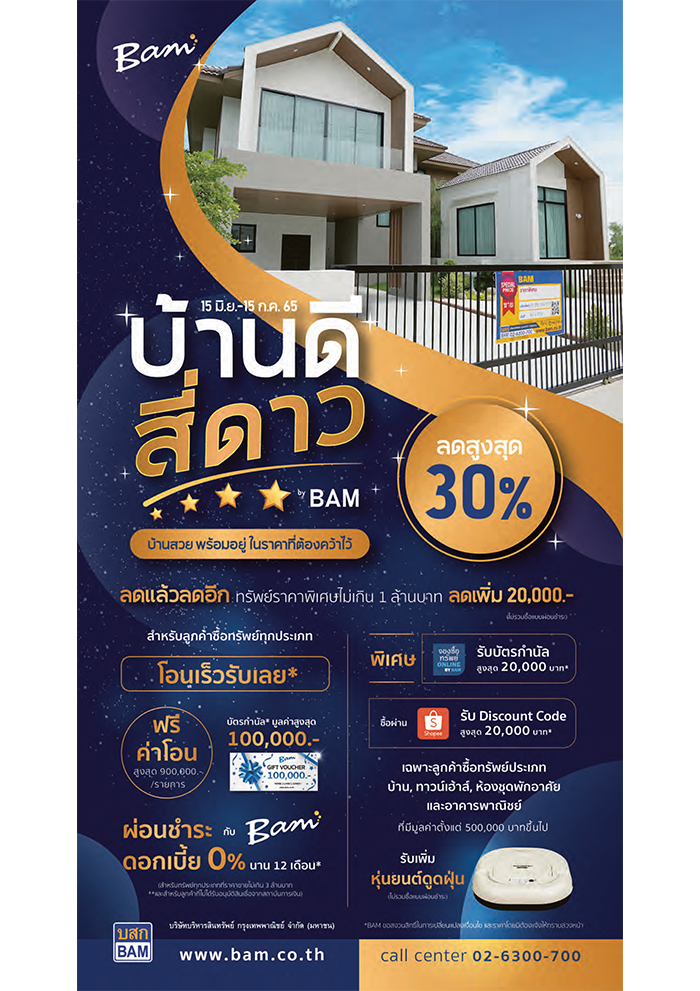 BAM จัดแคมเปญ บ้านดี สี่ดาว ลดสูงสุดกว่า 30% ให้ลูกค้าเลือกช็อป 15 มิ.ย. - 15 ก.ค. 2565